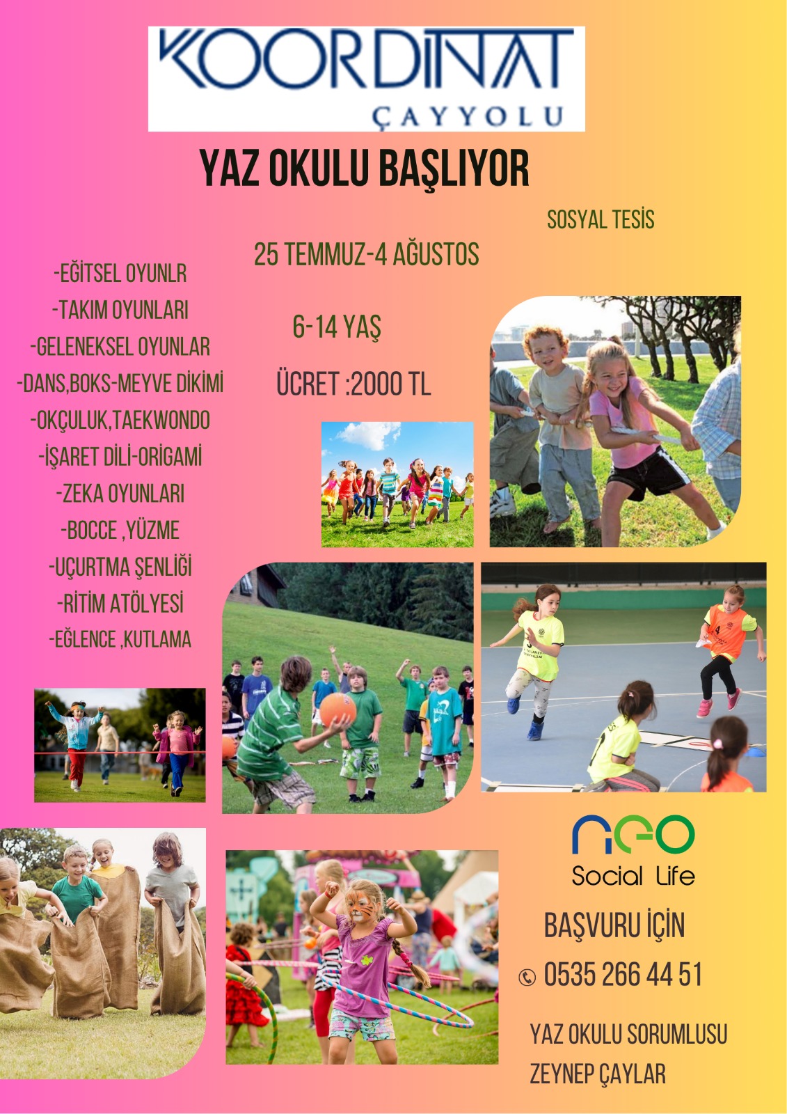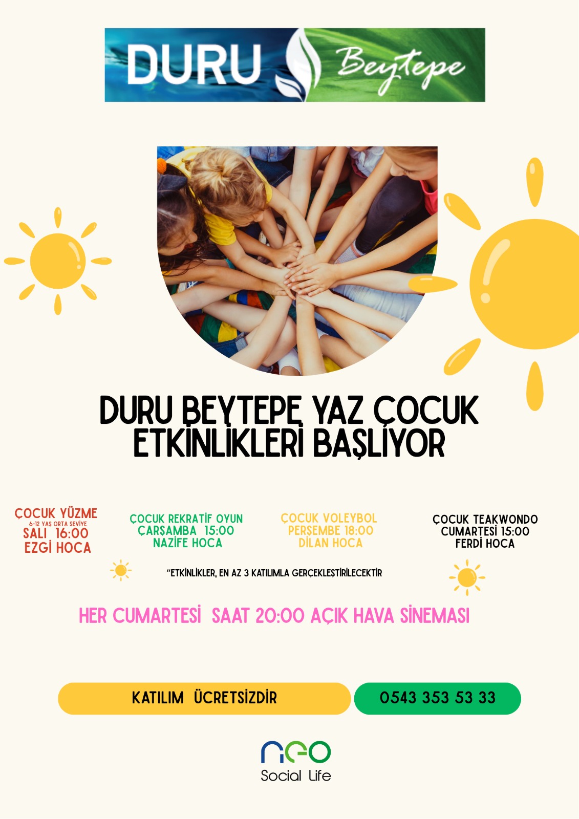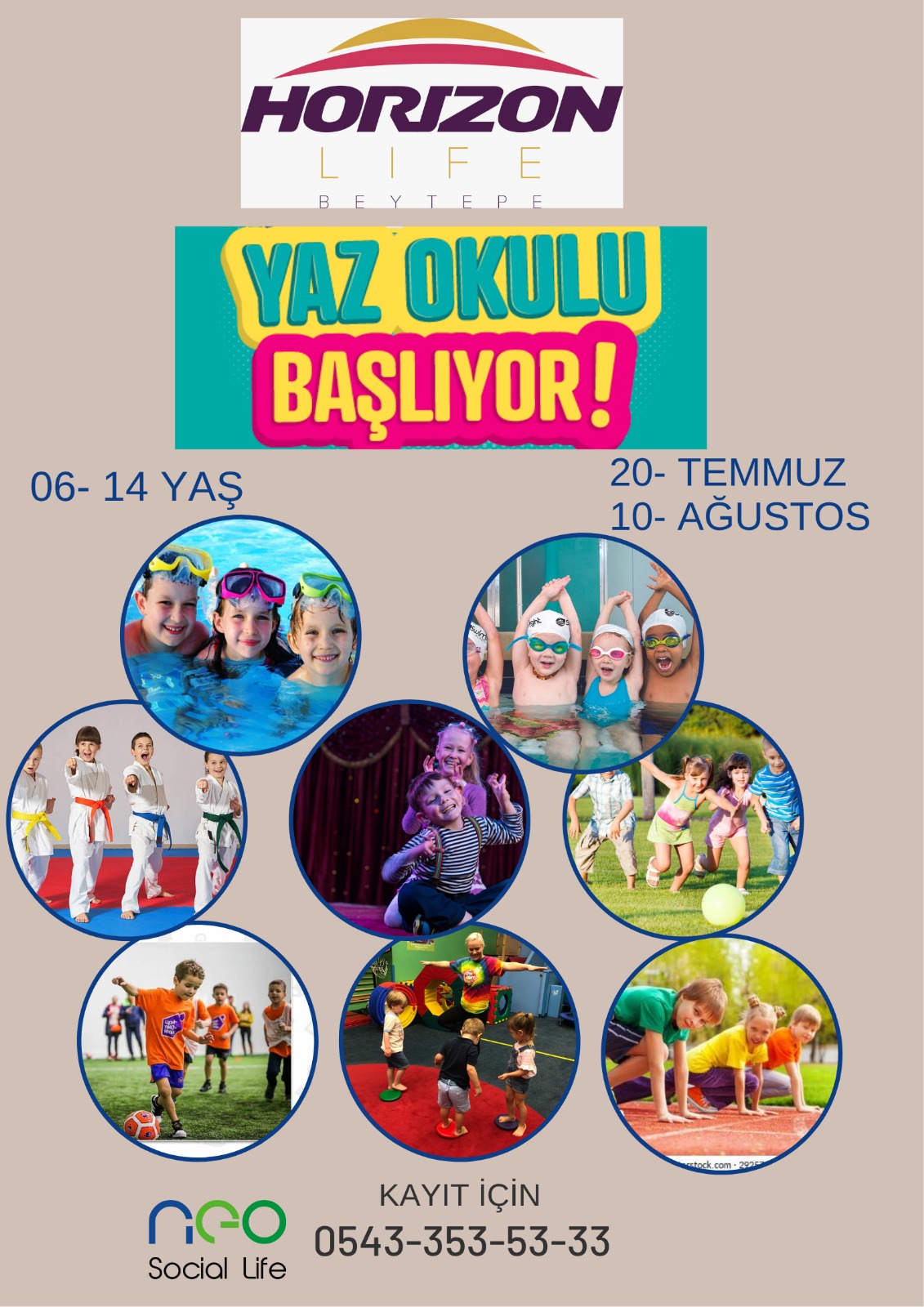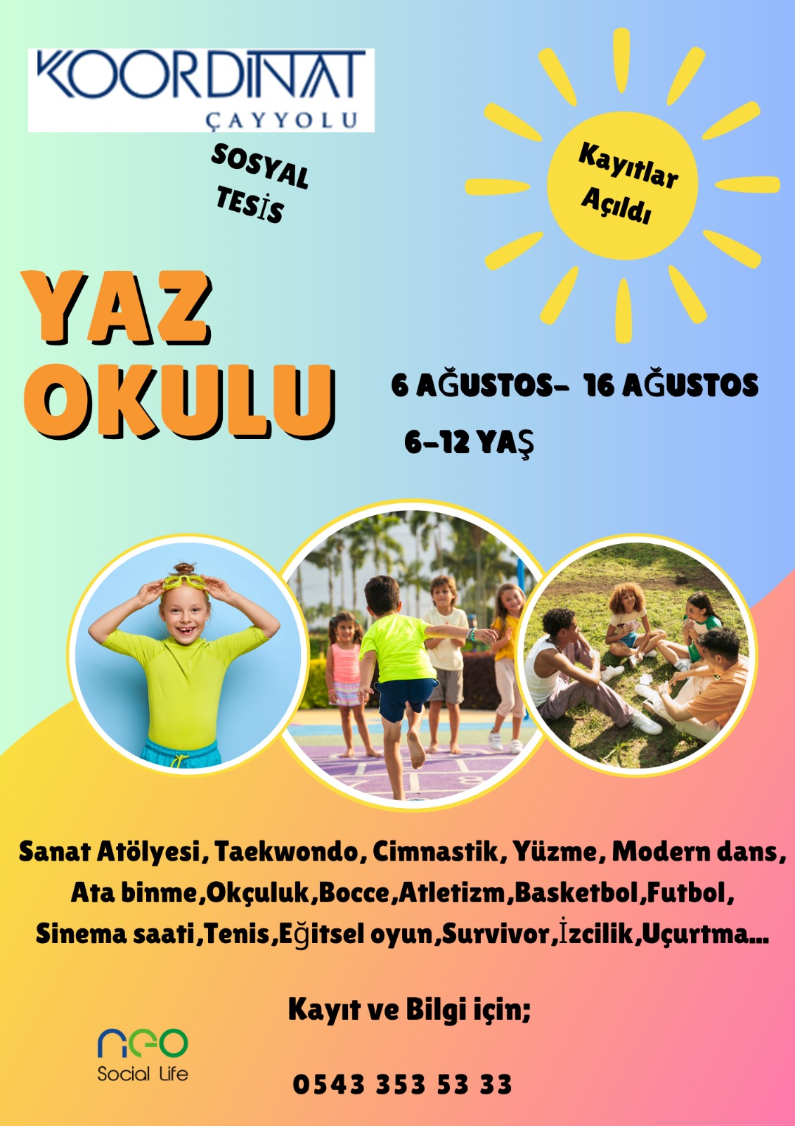 Neo Social Life çocukları da ayrıcalıklı olacak! Alınan talepler değerlendirilerek dönemlik açılacak kurslarda yüzme, jimnastik, atletizm kursları için eğitmen sağlanacak. Aileler çocuklarını bu kurslara dahil edebilecekler.